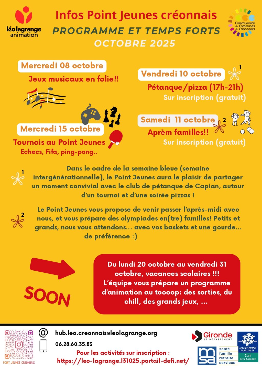 Retrouvez toutes les activités du Point Jeunes du mois d'octobre :