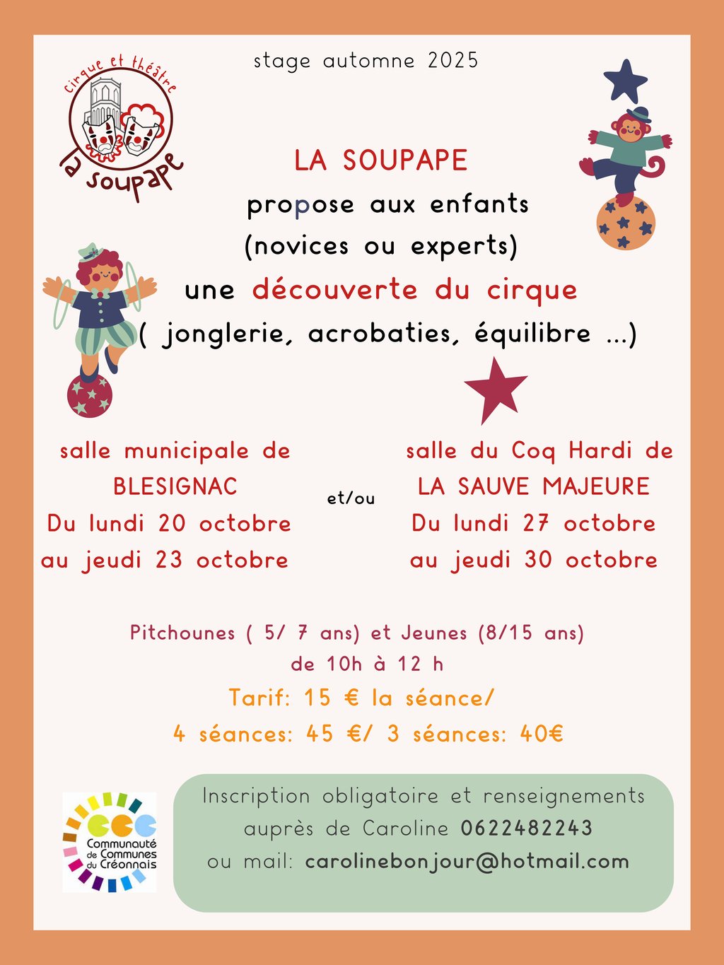 Inscrivez-vous dès maintenant pour le stage de cirque de La Soupape pendant les vacances d'automne ! 🍂