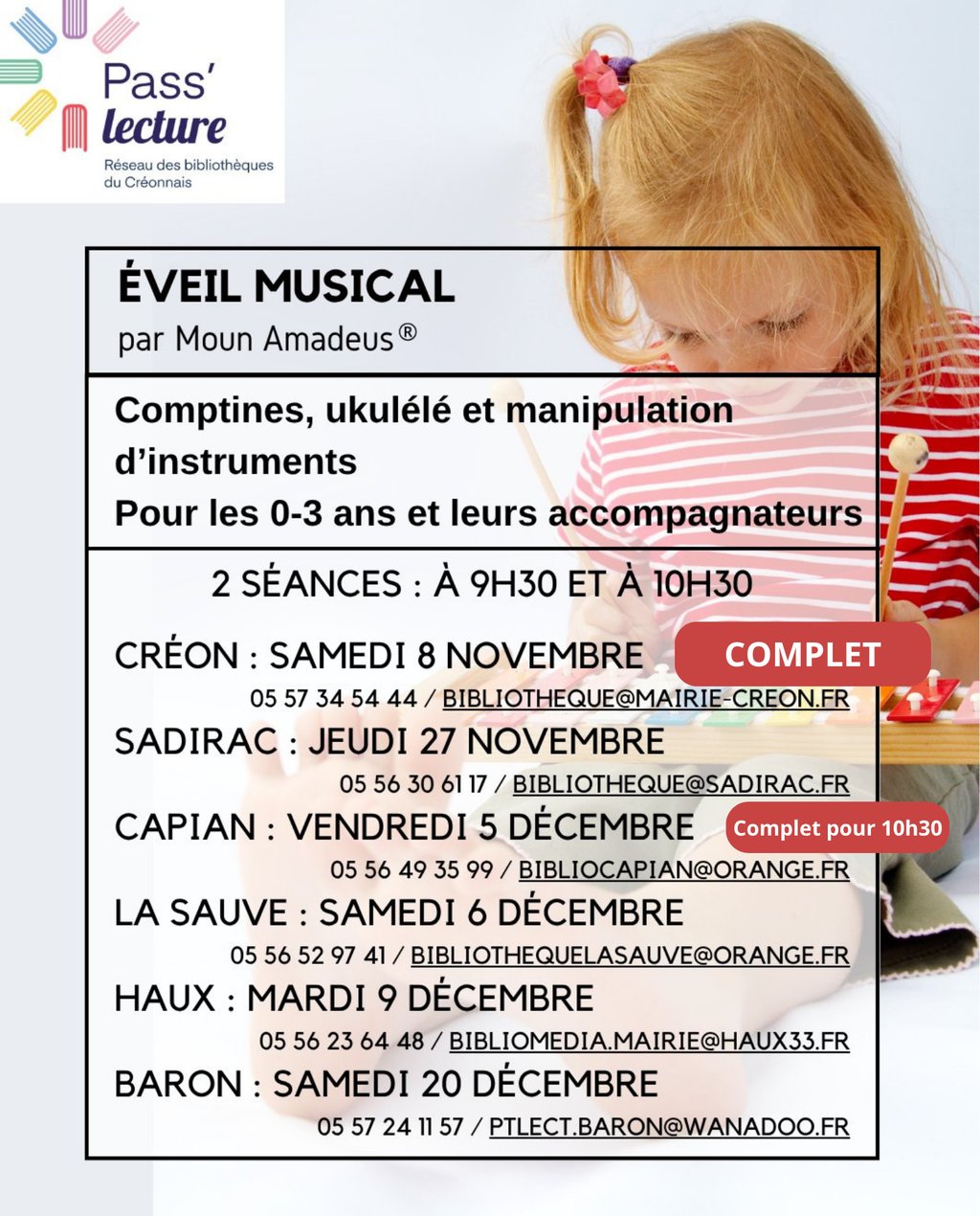 Le réseau Pass'Lecture vous propose des séances d'éveil musical 🪇, mêlant comptines, ukulélé et manipulation d'instruments.