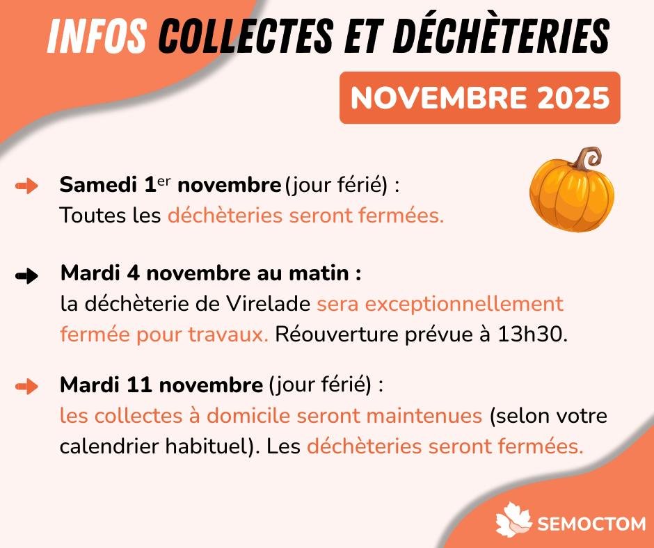 Mardi 11 novembre (jour férié) : collectes à domicile maintenues et déchèteries fermées