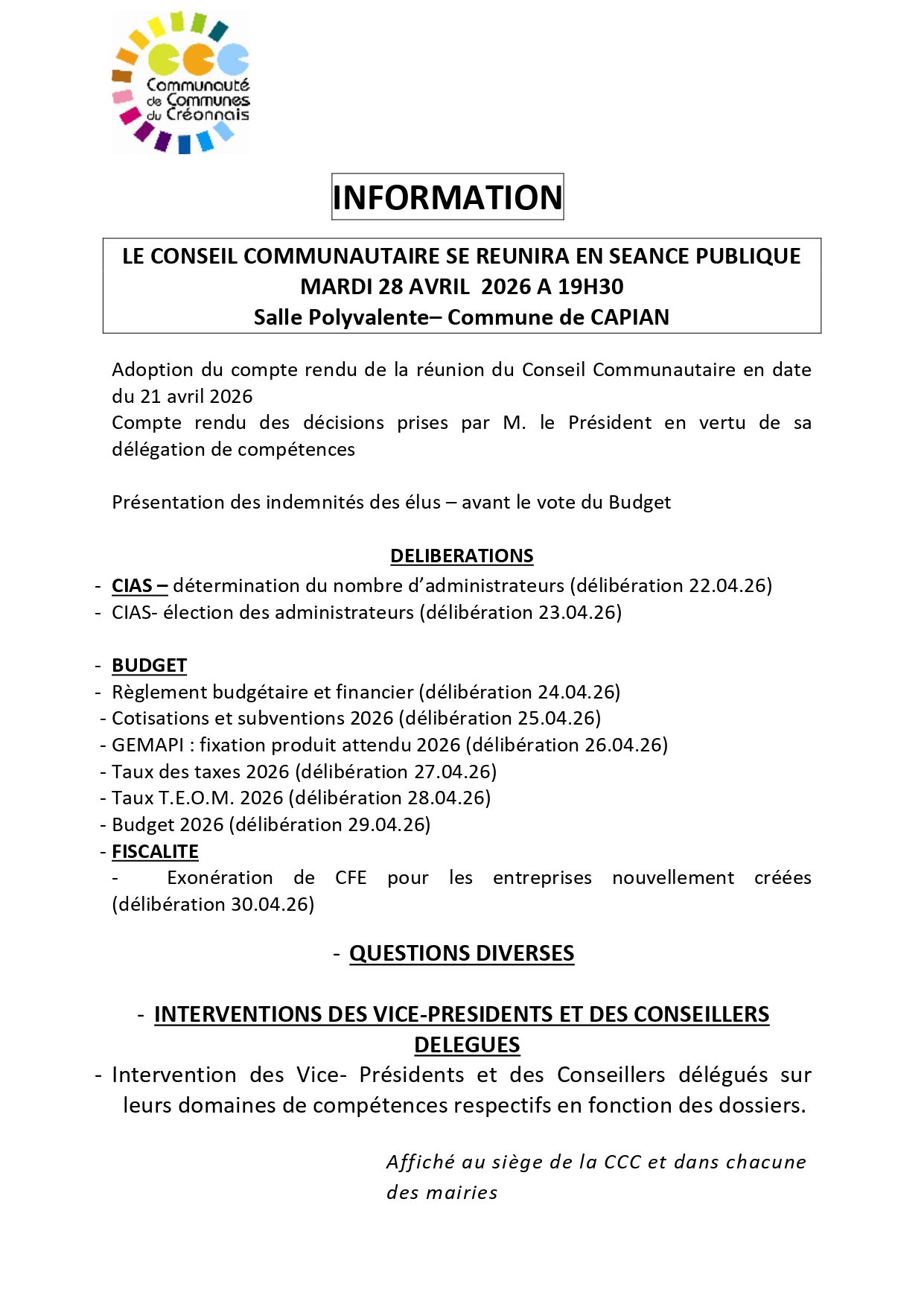 [Prochain conseil communautaire] 📣