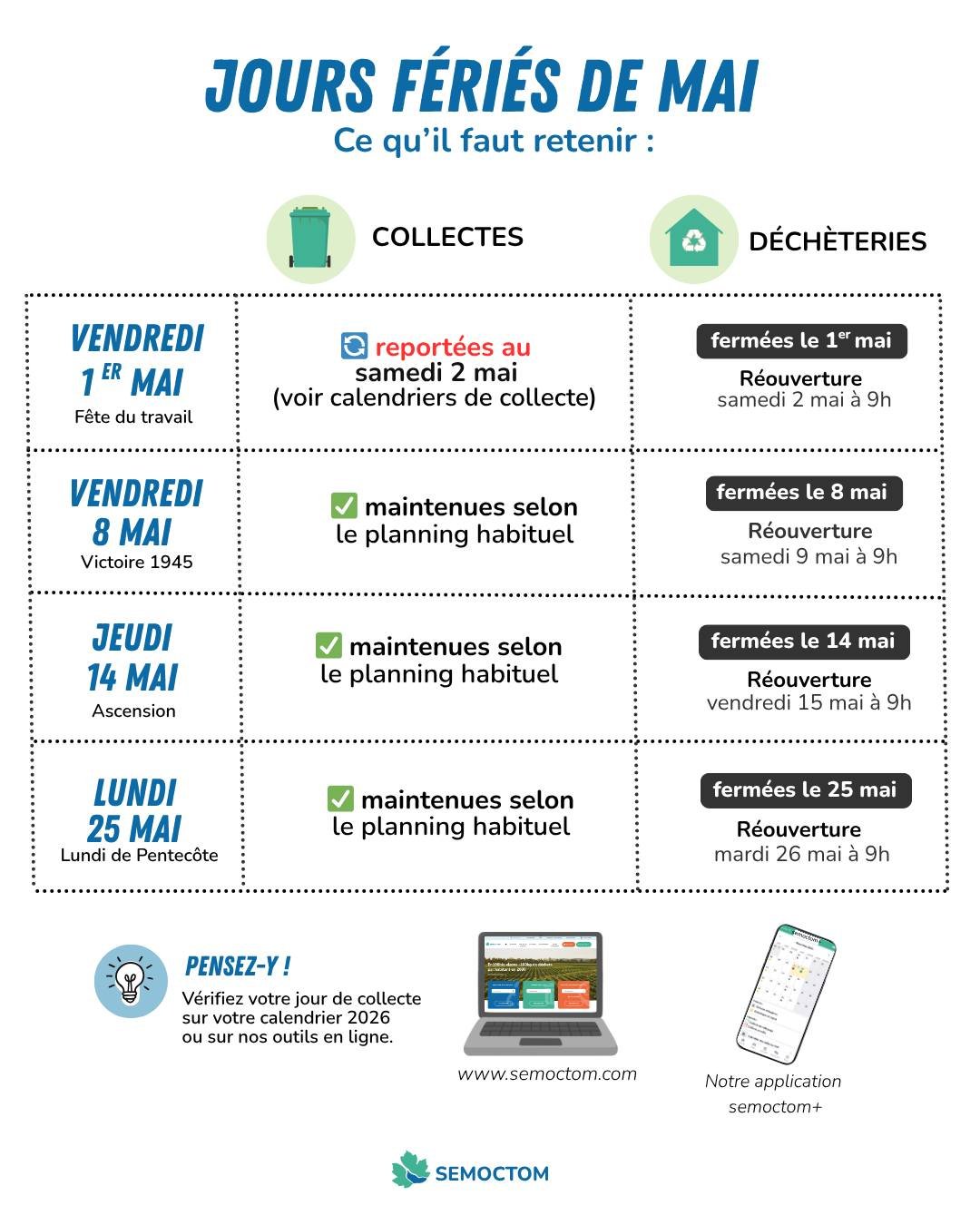 [Déchèteries] - jours fériés de mai !