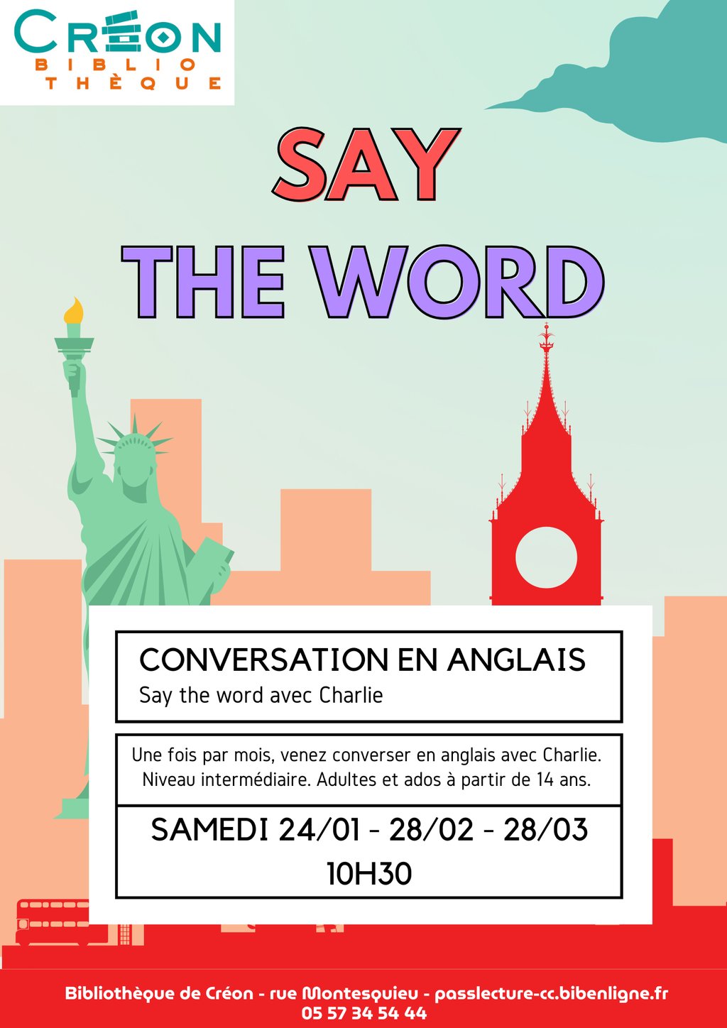 Pour s'inscrire : 05 57 34 54 44 / bibliotheque@mairie-creon.fr
