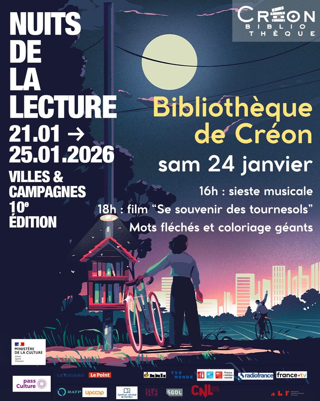 Infos/réservation : 05 57 34 54 44 / bibliotheque@mairie-creon.fr