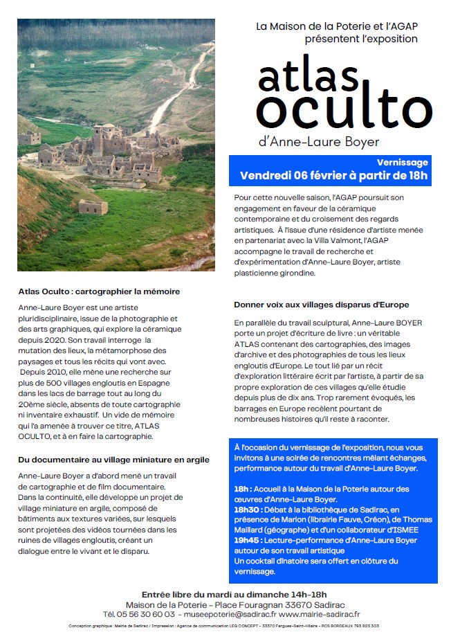 Exposition des œuvres « Atlas Oculto » d’Anne-Laure Boyer, artiste pluridisciplinaire issue de la photographie et des arts graphiques, venue à la céramique depuis 2020, girondine, en résidence en partenariat avec la Villa Valmont de Lormont et l’AGAP.