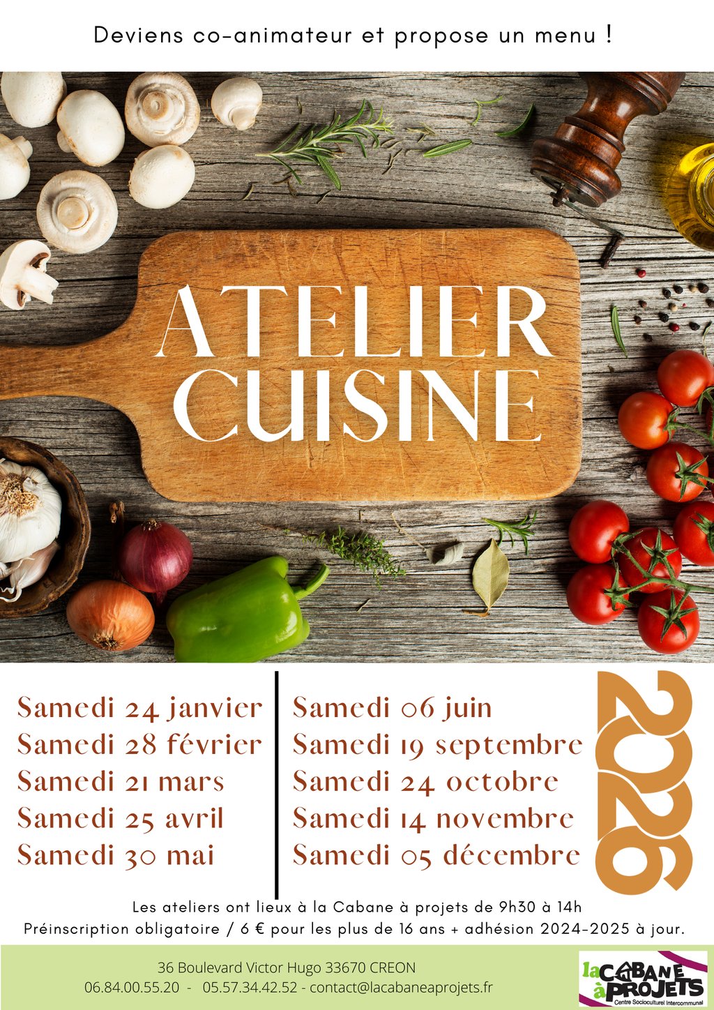 Informations et inscription au 06.84.00.55.20 au activites@lacabaneaprojets.fr
