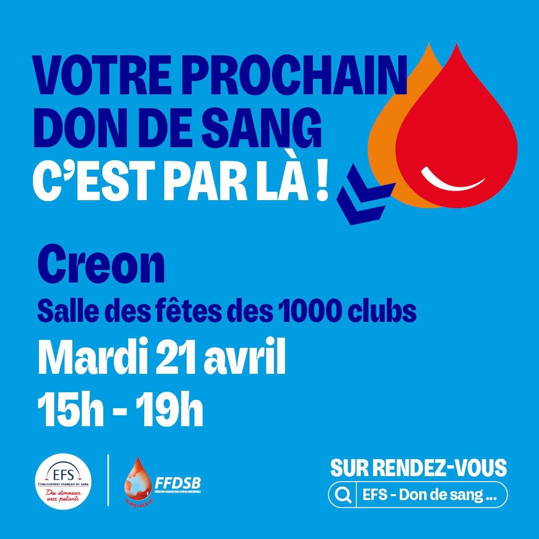 La prochaine collecte aura lieu le mardi 24 février 2026 de 15h à 19h à la Salle des fêtes 1000 clubs.